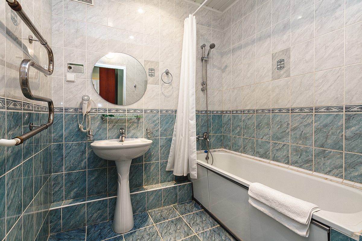 Санузел: с ванной, раковиной, унитазом, биде, феном