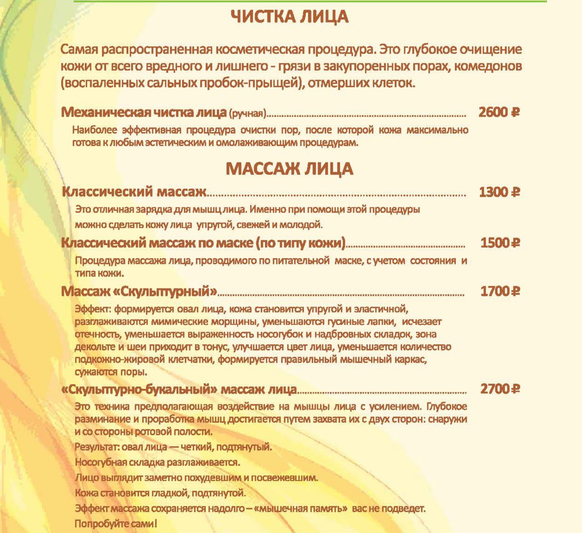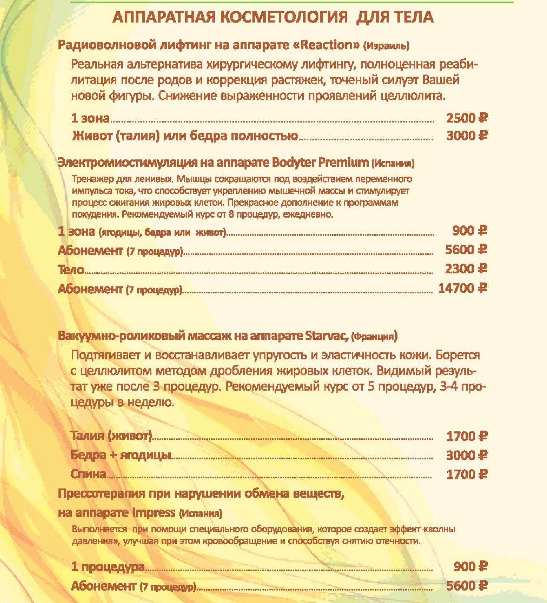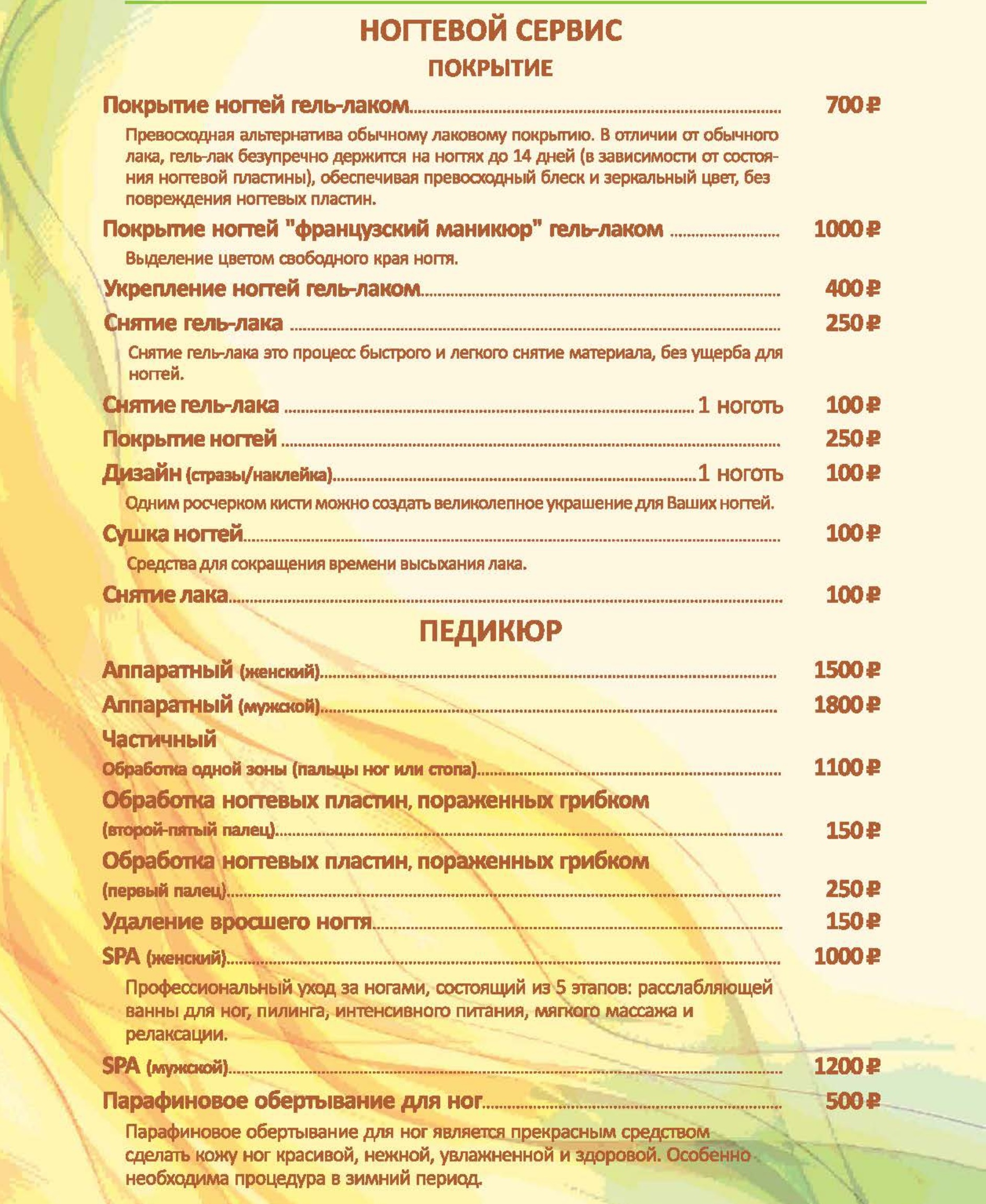 Цены на СПА услуги