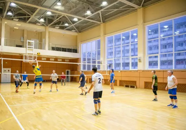 • Просторный спортивный зал площадью 450 м² для занятий лечебной физкультурой, волейболом и баскетболом.