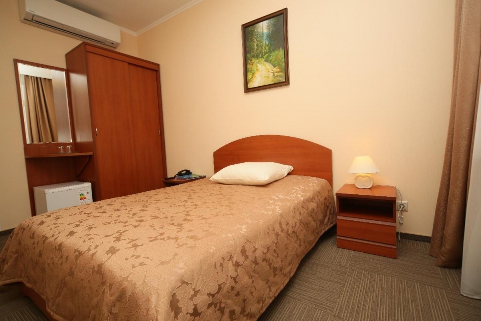 В номере: 1,5-спальная кровать 150х200, мини-бар холодильник/мини-бар, телевизор, кабельное ТВ, Wi-Fi, набор посуды: графин для воды, 2 стакана, балкон. Для детей по запросу предоставляются детские кровати.