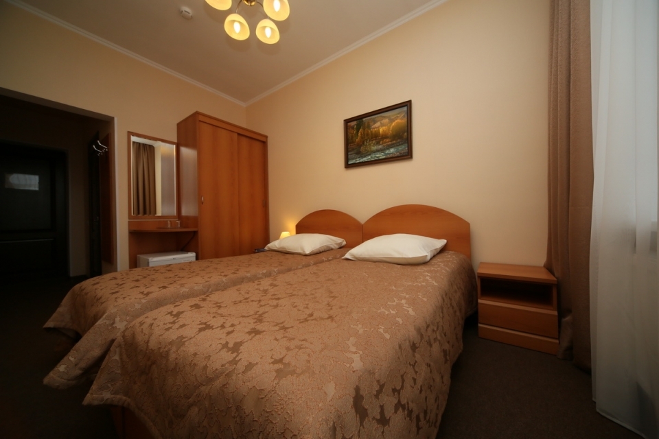 В номере: две 1-спальные кровати 90х200, мини-бар холодильник/мини-бар, телефон, телевизор, кабельное ТВ, Wi-Fi, набор посуды: графин для воды, 2 стакана, балкон. Для детей по запросу предоставляются детские кровати.